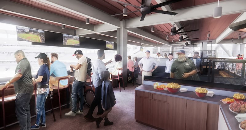 The new addition in left field will be six private, open-air boxes, each with seating for 20 to 25 fans. The boxes can be combined to create a customized experience for larger gatherings and are being sold on a per-game basis.