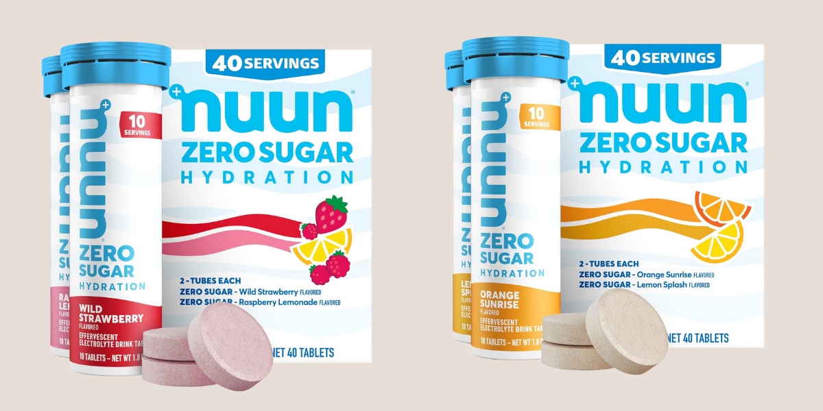 Nuun’s zero-sugar hydration tablets are a perfect, guilt-free way to enhance your water throughout the day. You’ll get five essential electrolytes for everyday hydration — with zero grams of sugar.