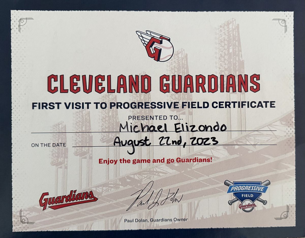 First Game Certificate. Progressive Field