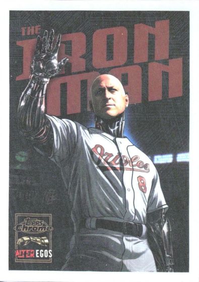 Rounding out the Hall of Famers is the “The Iron Man” himself, Cal Ripken Jr. Shown with an iron body and a human head, Ripken’s card evokes memories of the night he played his 2,131st straight game in 1995 and was celebrated by fans for 22 minutes in the middle of the game.