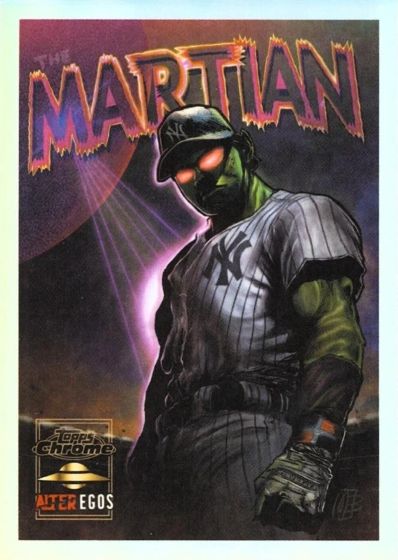 With extraordinary power, Dominguez earned the nickname “The Martian” because his offensive future seemed out of this world. Dominguez sports the traditional look of a Martian on his card as he is beamed into a stadium from the sky.
