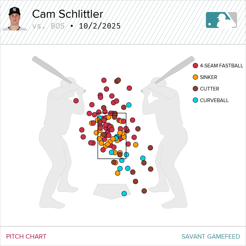 Schlittler wasn’t perfect. He didn’t dot the edges with each pitch, but he did get ahead of hitters and force them to swing at pitches that don’t typically yield great results. Of 107 pitches, he threw just 19 behind in the count.
