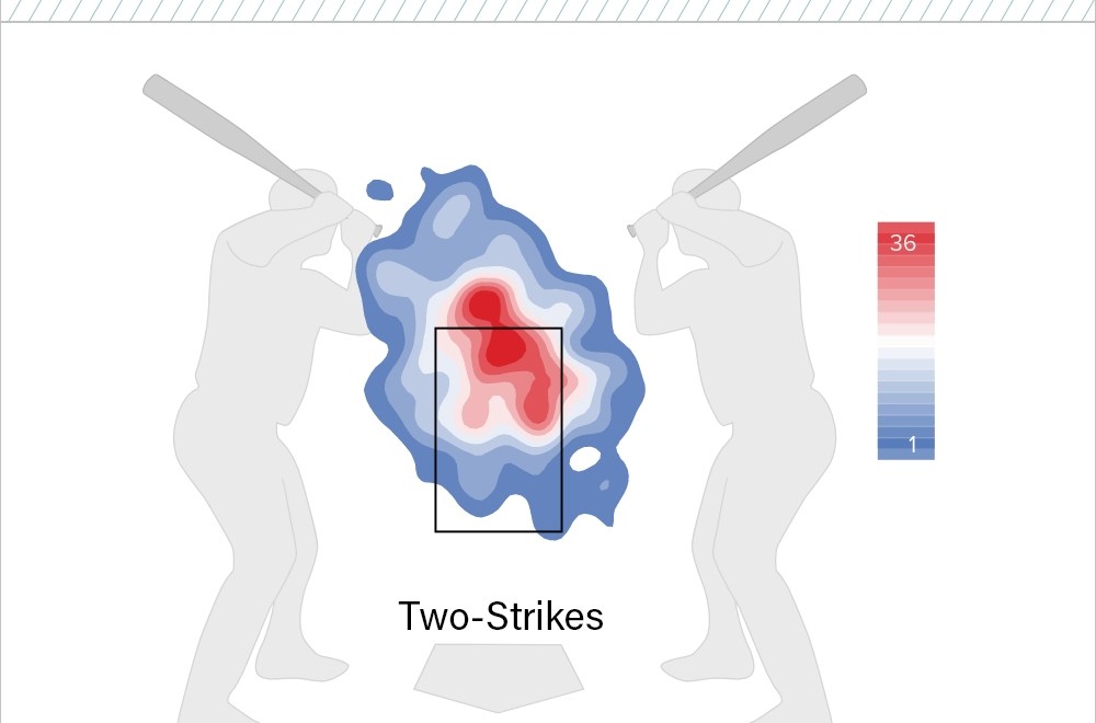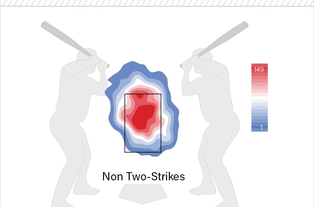 Circling back to the original point, the only pitches that consistently return positive results to hitters are those down the middle. That’s why count leverage is everything. Pitches in the “shadow” zone (roughly one ball width inside and outside the strike zone) returned a .268 wOBA last season; pitches in the “heart” zone returned a .356 wOBA. Behind in the count, hitters are forced to be more aggressive and swing at those pitches. In 0-0, 1-0, and 2-0 counts, hitters swung at 35.1% of pitches in the “shadow” zone. In 0-1. 0-2, and 1-2 counts, that number rose to 64.6%. If you can get ahead in the count, everything else gets a little bit easier.