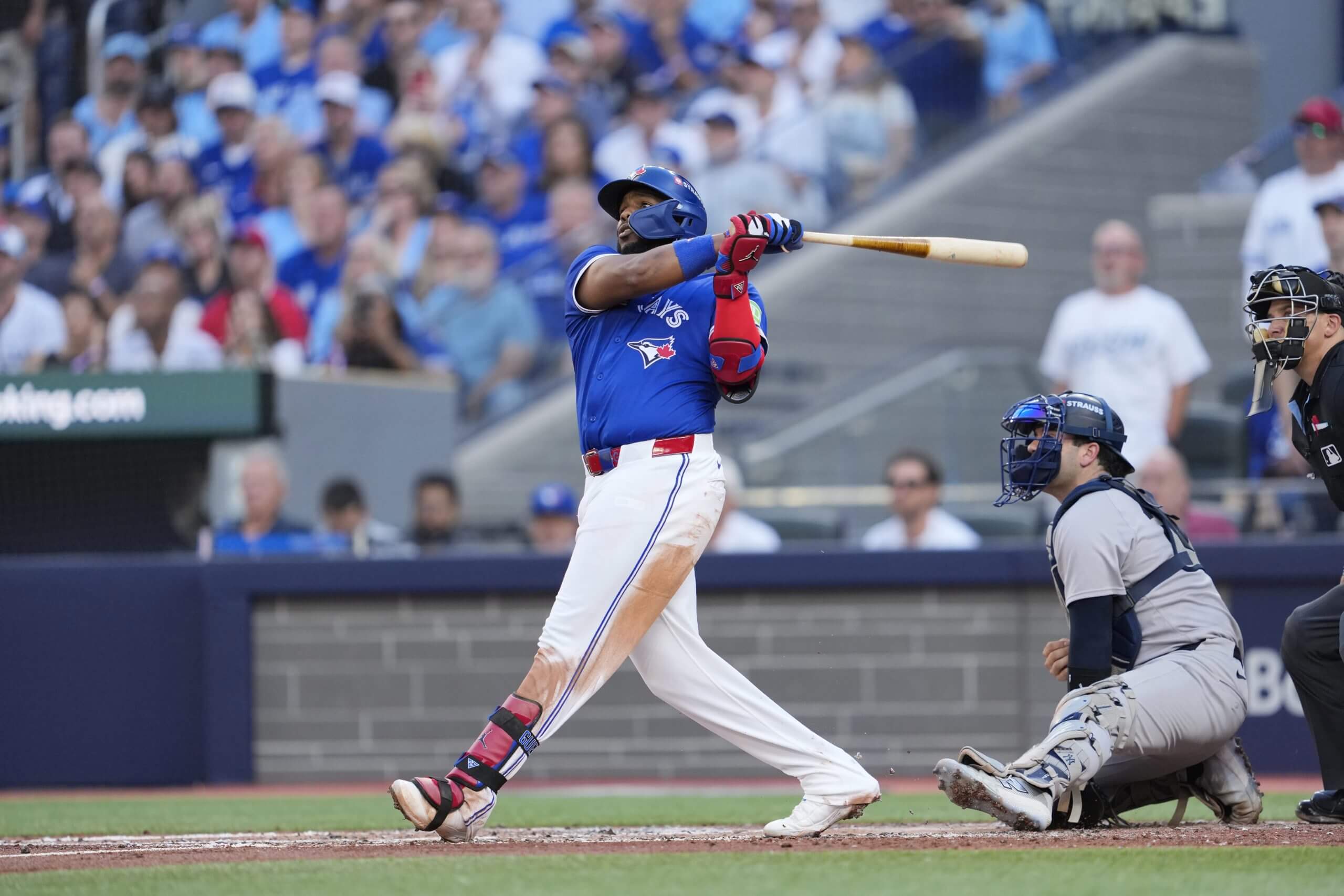 Vladimir Guerrero Jr. and the Blue Jays bludgeoned the Yankees in the NLDS. (Mark Blinch / Getty Images)