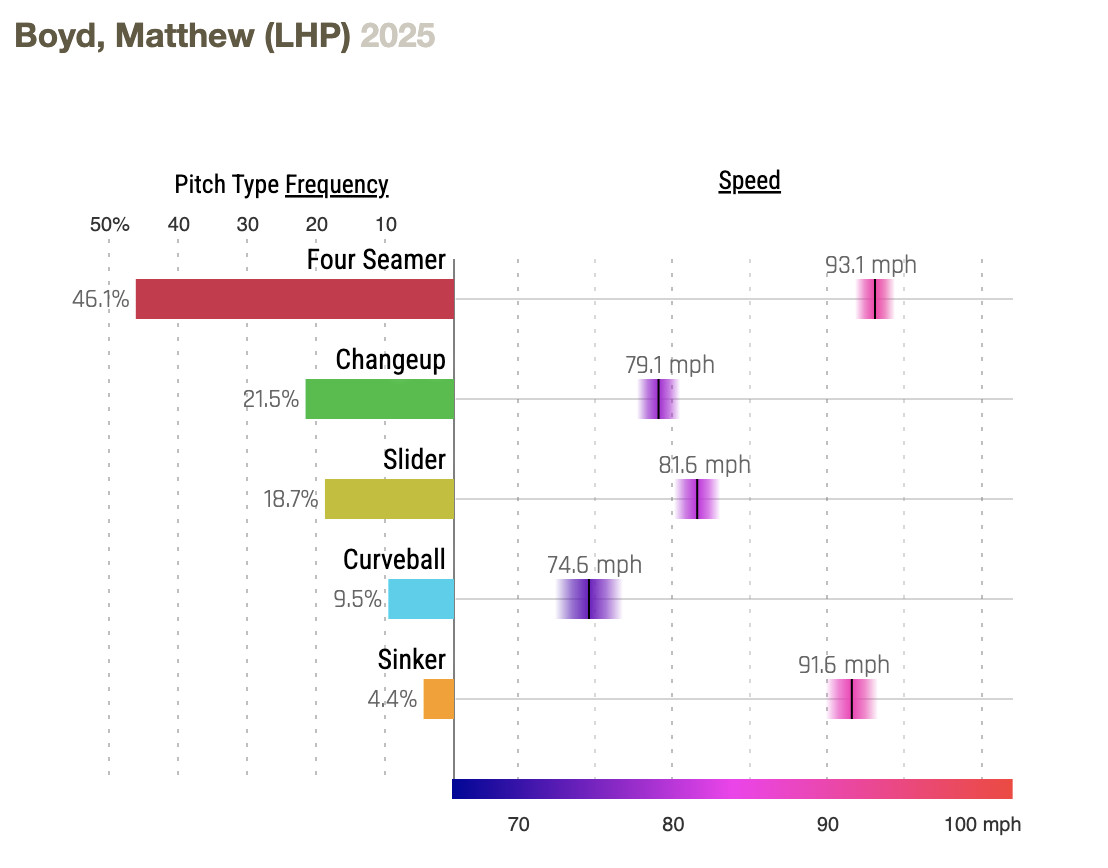 Boyd hasn’t faced the Reds since 2021 when he was with the Tigers, and no current Reds batter has more than four at-bats against him. The Reds have a .623 team OPS vs. LHP (compared to .738 vs. RHP) and are 6-9 vs. LH starters this year.