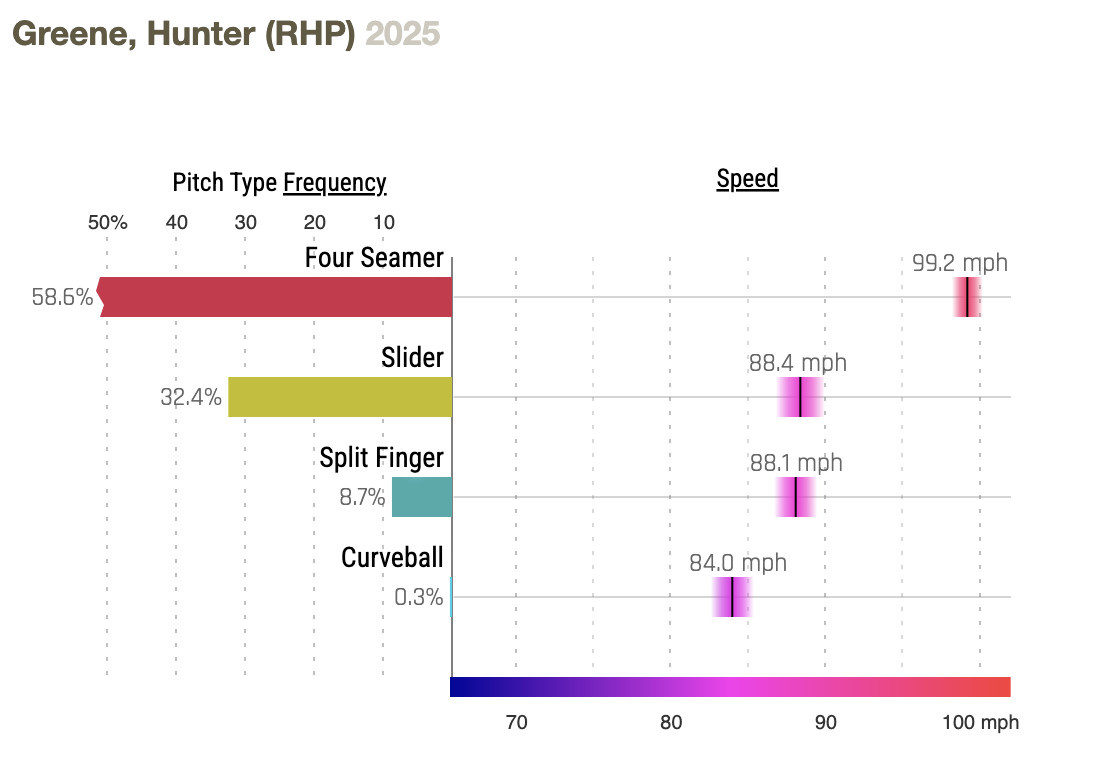 Hunter Greene was blazing along having a very good year (2.36 ERA, 0.810 WHIP, 61 strikeouts in 45⅔ innings) when he suffered a groin strain in his start May 7 against the Braves and had to leave after three innings.