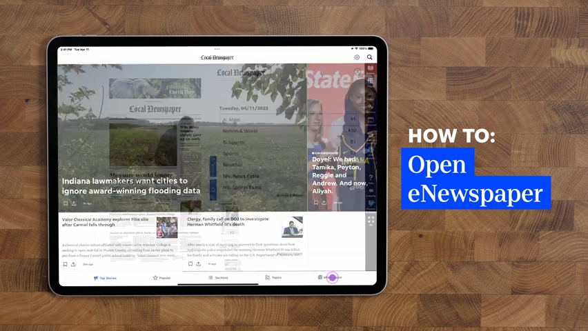 Tap the eNewspaper icon at the bottom right of the app screen.