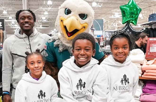 A.J. Brown launched his foundation in 2024 “to create pathways for youth to build resilience, confidence, and a brighter future. Through programs and support focused on empowerment and opportunity, they help young people believe in themselves, push through challenges, and see success as something within reach.”