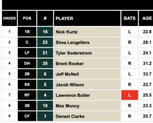 Here’s what the Athletics’ current lineup looks like as projected with FanGraphs: