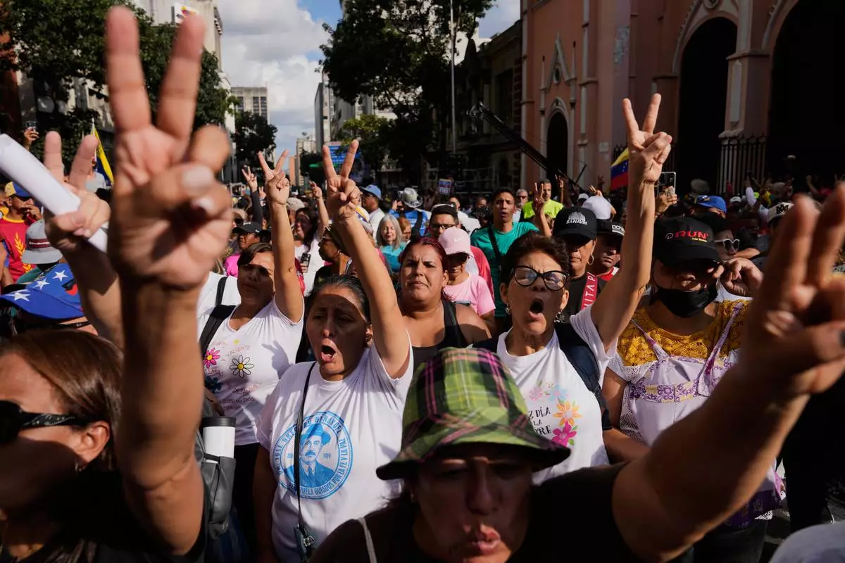 Government supporters demand President Nicolas Maduro’s release from U.S. custody during a protest in Caracas, Venezuela, Sunday, Jan. 4, 2026. (AP Photo/Ariana Cubillos)