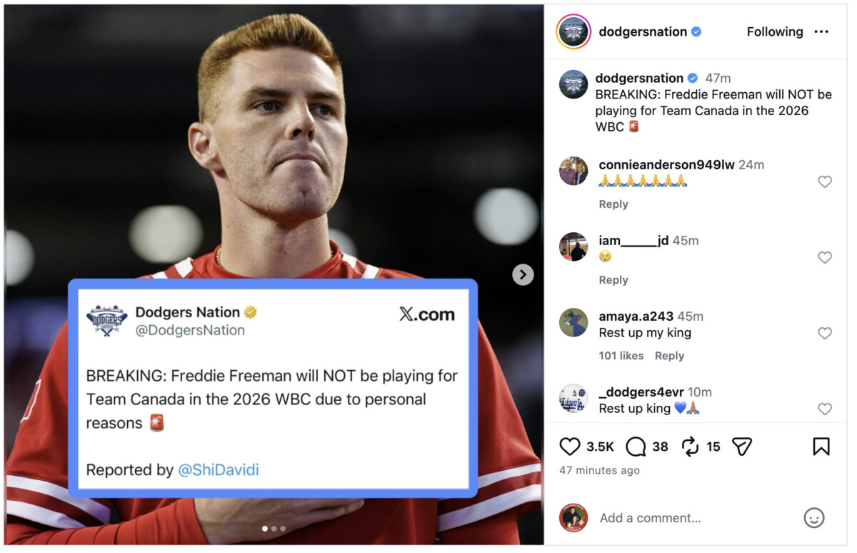 Some tough WBC news for Canada as Freddie Freeman withdraws for personal reasons. Dodgers star played in past two tourneys.