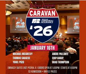 The Cardinals Caravan is making plans for the 2026 tour, which takes place Jan. 16 and 17.  The dates are the same time as the Winter Warm-Up in St. Louis at Busch Stadium and Ballpark Village– so there will be a lot of Cardinal baseball available to the collective Cardinal Nation. For info on the Winter Warm-Up, CLICK HERE.