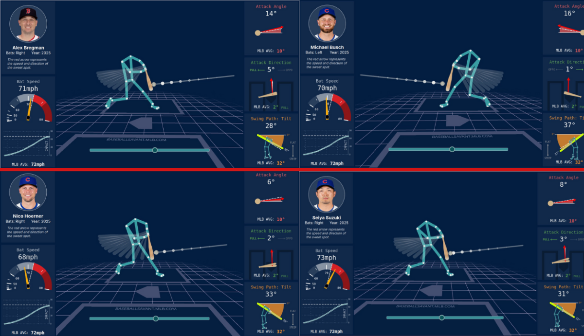 Consider this glimpse at the swings of four Cubs hitters: Bregman, Busch, Hoerner and Suzuki.Â
