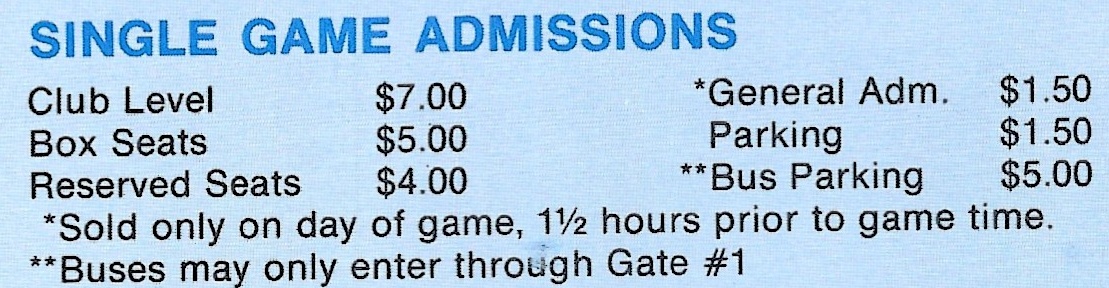 Here are 1975 ticket prices, from the team yearbook.