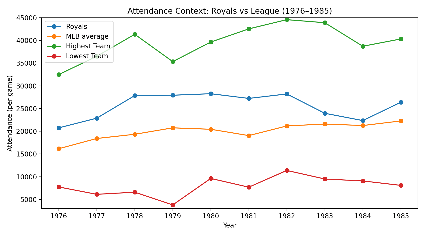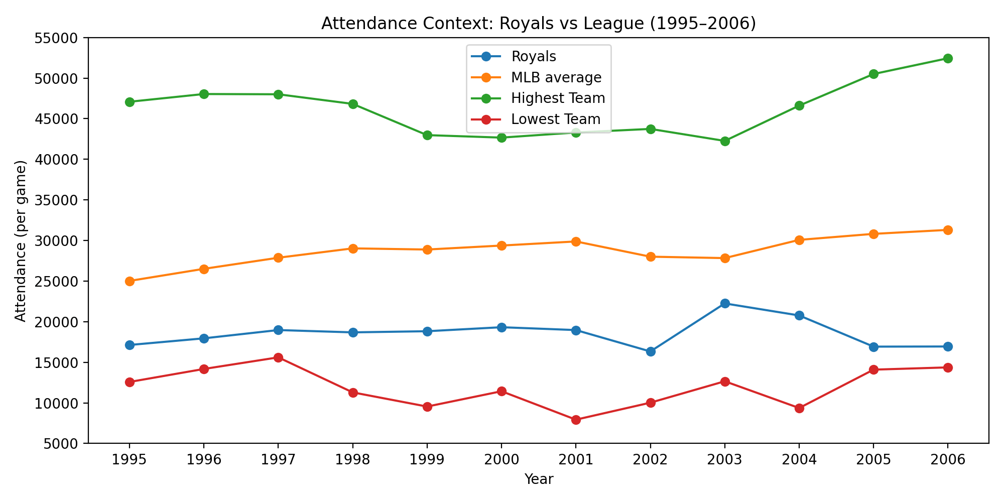 Here’s a look at how Royals attendance has evolved over the years compared to MLB averages.