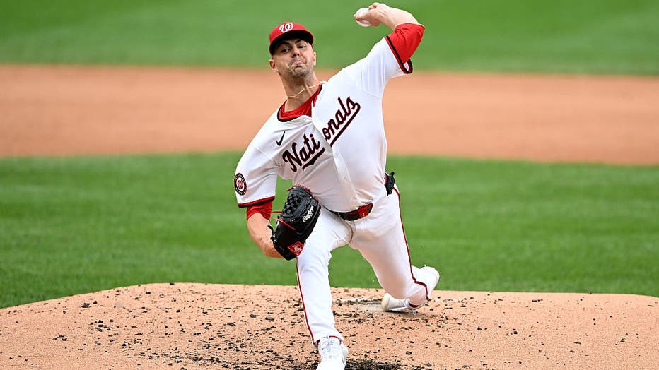 WASHINGTON, DC – AUGUST 21: MacKenzie Gore #1 of the Washington Nationals pitches against the New York Mets at Nationals Park on August 21, 2025 in Washington, DC. (Photo by G Fiume/Getty Images)