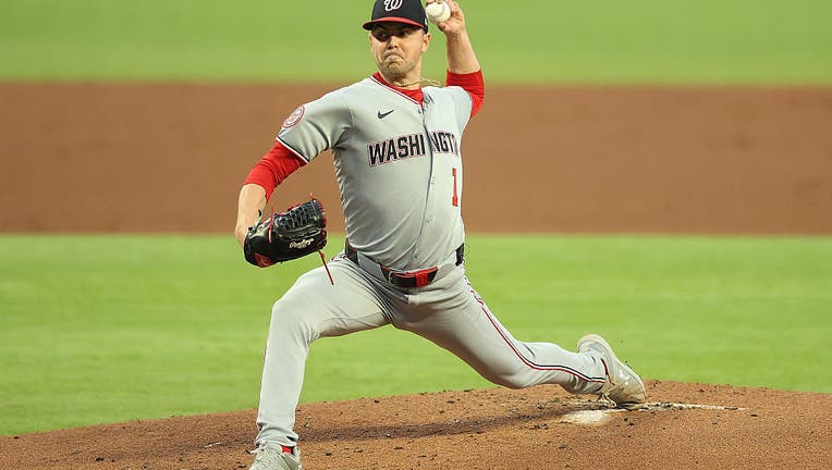 ATLANTA, GEORGIA – SEPTEMBER 22: MacKenzie Gore #1 of the Washington Nationals pitches in the first inning against the Atlanta Braves at Truist Park on September 22, 2025 in Atlanta, Georgia. (Photo by Kevin C. Cox/Getty Images)