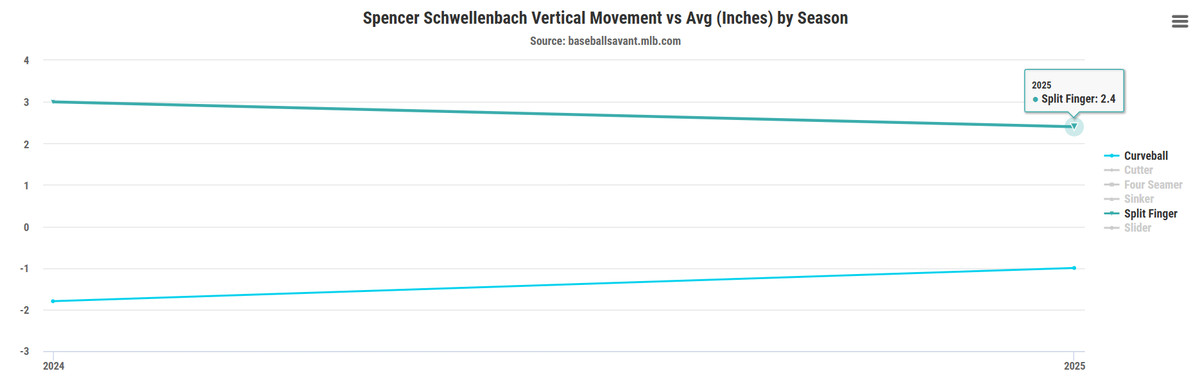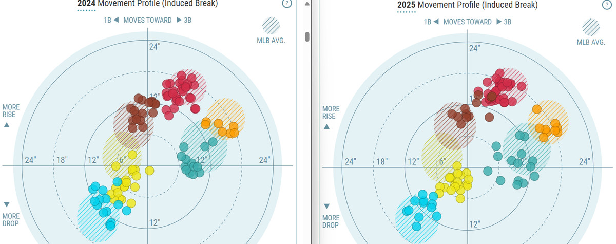 The curve doesn’t seem to be getting quite the same drop, but one of the things that sticks out to me is how tight everything is in 2024 and how erratic it looks in 2025. And that might be part of it – when you’re not sure exactly how much it’s going to break, it’s hard to know where to throw it to get your desired result.