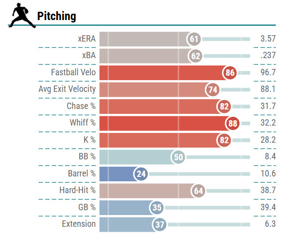 Dylan Cease, however, does not have any trouble missing bats, and he’s pitching about as well as ever, with the exception of giving up a few more dingers. His 4.50 ERA might not lead you think so, but the peripherals and more in-depth metrics say he’s about a run or so better than that. His Statcast isn’t glowing, but you’re still looking firmly at a #2 starter.