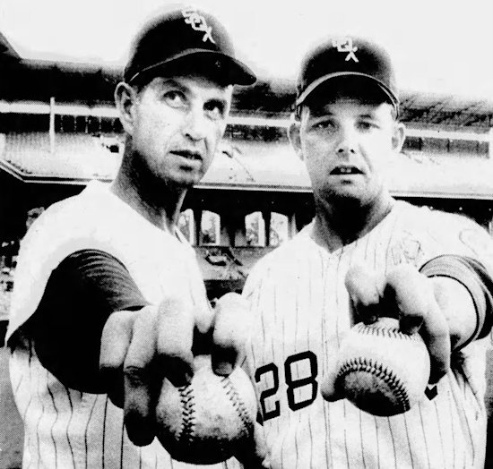 The White Sox knuckleball duo of Hoyt Wilhelm and Wilbur Wood. Source: The Los Angeles Times, July 8, 1985.