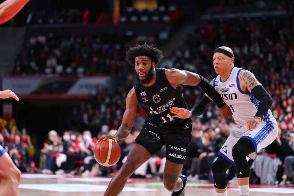 Nagoya Diamond Dolphins small forward Aaron Henry in action against the SeaHorses Mikawa on January 25, 2026, in Nagoya. (©B.LEAGUE)