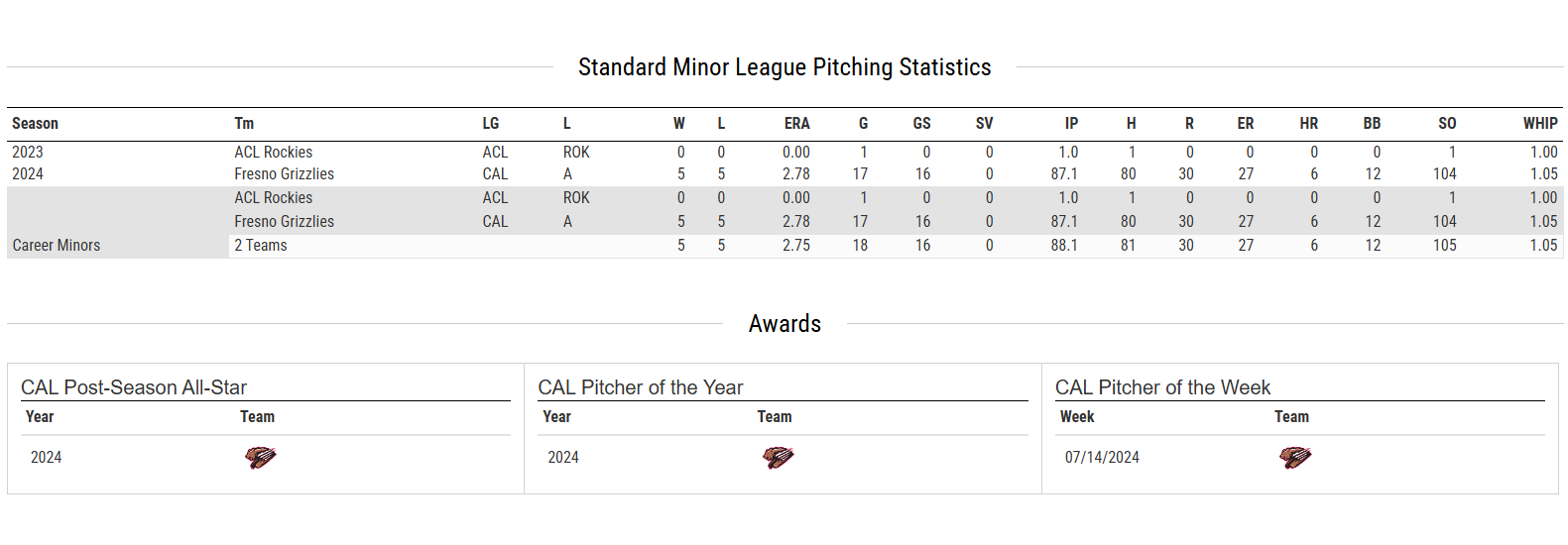 Kaminska, 24, missed the entirety of the 2025 season due to Tommy John surgery, but had a great season for Low-A Fresno in 2024 recording a 2.78 ERA in 87 1/3 innings of work while striking out 10.7/9IP. Kaminska was drafted in the 10th round of the 2023 MLB Draft out of the University of Nebraska where he had a 4.13 ERA over 15 starts for the Cornhuskers, something strange is that he only struck out 57 batters over the 72 innings he pitched good for only 7.1/9IP. Kaminska was also a 2-time Gatorade Player of The Year in Kansas in Highschool. Though Kaminska was sidelined with TJ this season he still has a high upside for the future twins in 1-2 years as an actual big-league arm.
