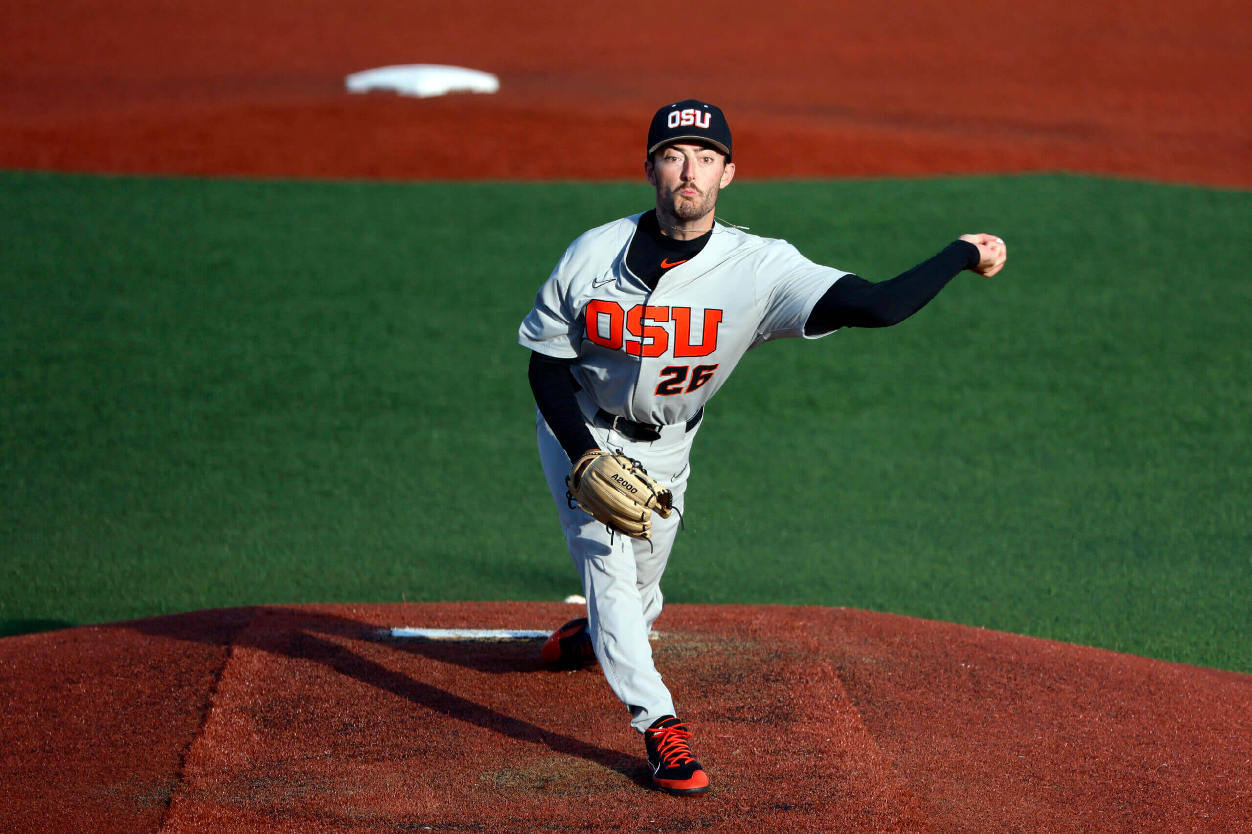Scouting report: Hjerpe had eye-popping numbers this spring for the Beavers, with a Division I-leading 161 strikeouts and a strikeouts-per-nine-innings rate that ranked second, behind only a 23-year-old sophomore at FIU. Hjerpe does it with two potentially plus secondary pitches in his slider and changeup – the former getting big sweeping action from his low slot, while the latter is helped by the deception in his delivery. The delivery is one of the main concerns, however, as Hjerpe cuts himself off and comes way across his body, while he delivers the ball from a very low slot not far above sidearm. The other concern is that his fastball is ordinary, 88-93 mph now, with multiple scouts saying they fear it’ll go backwards in pro ball when he’s asked to pitch every fifth day. He may be able to start thanks to those two secondary pitches, but there is no big-league starter in recent memory who was this cross-body, so Hjerpe may have a lot more upside in the bullpen instead.