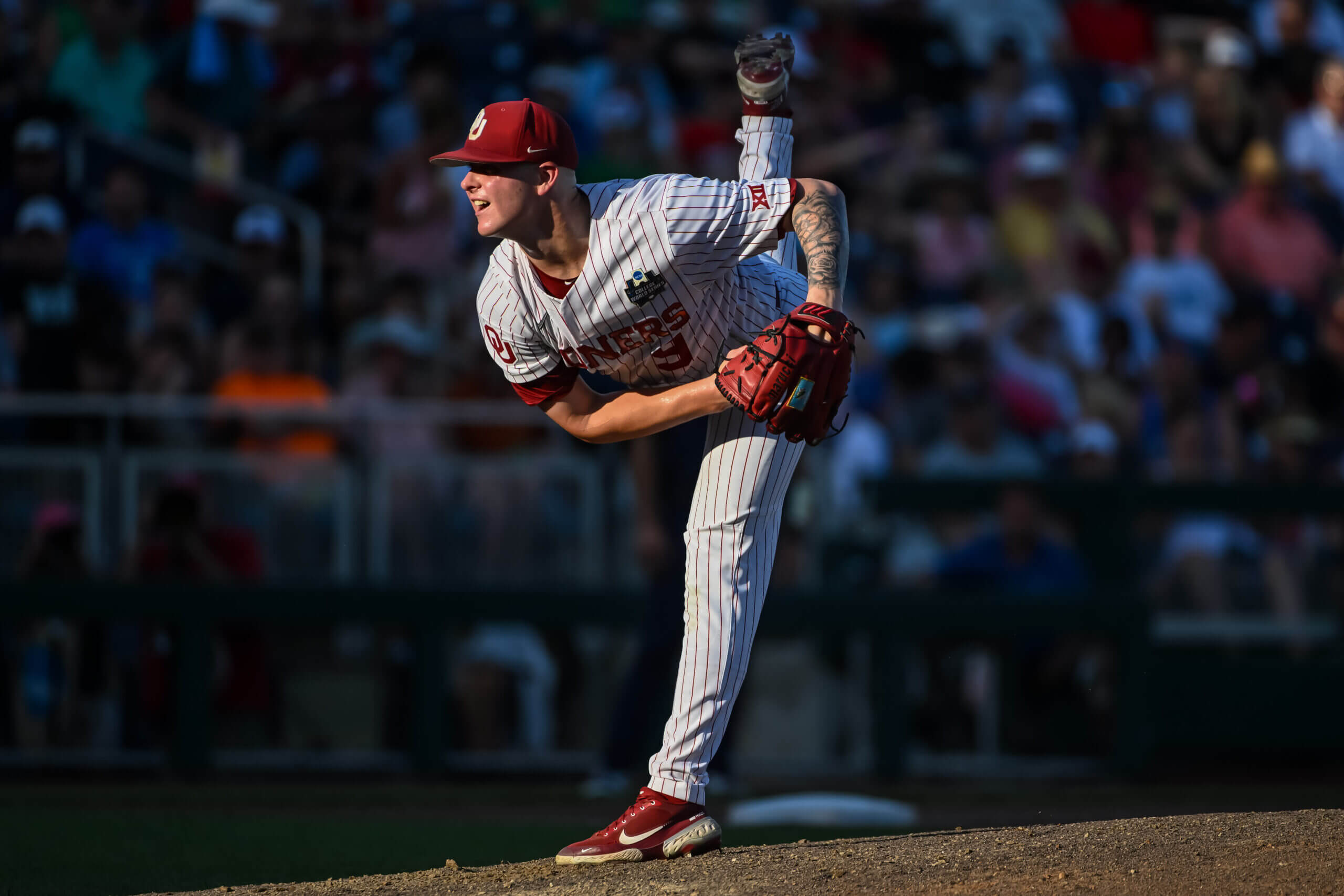 Scouting report: Horton is an age-eligible sophomore (he’ll turn 21 in August) who missed 2021 after Tommy John surgery but has been a key part of the Sooners’ run to Omaha this year, working with two pitches that have helped him dominate right-handed batters. Horton sits 94-96 mph, touching 98 mph, and has a wipeout slider up to 89 mph that breaks downward so sharply that it doesn’t just fall off the table, it takes the tablecloth and all the dishes with it. He has no changeup to speak of and allowed an on-base percentage near .400 to lefties this year, and that’s the main thing keeping him from projecting as a starter. If you think there’s a third weapon in there somewhere, he would be a second-rounder; if not, he’s in the big bucket of good college pitchers who project as relievers and fit in rounds 3-5.