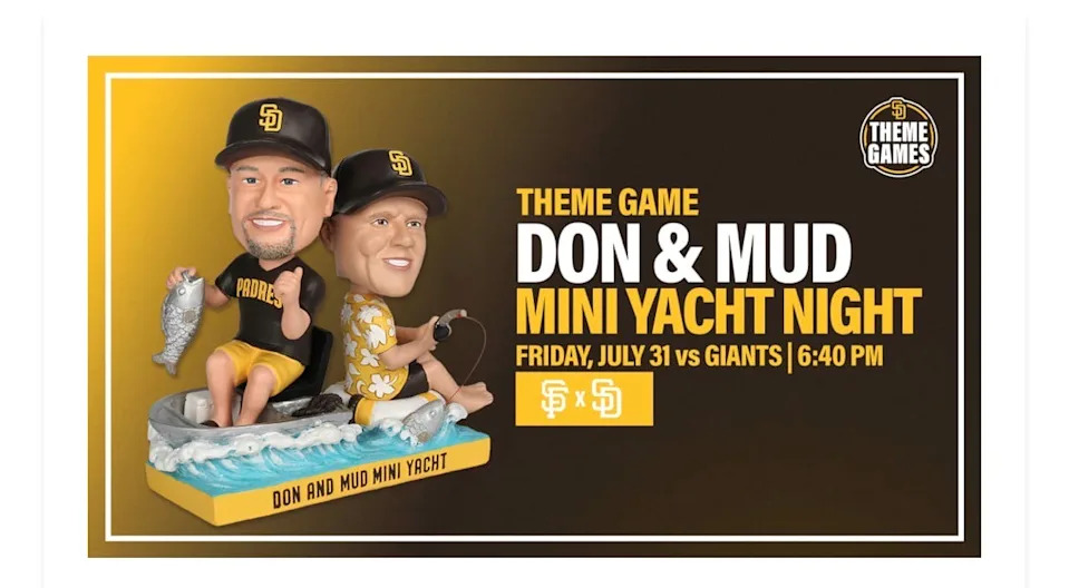 Not surprisingly, the Don & Mud theme game bobblehead, with Don Orsillo in his mini-yacht towing Mark “Mud” Grant sitting in a life ring, was the second choice. The broadcast team is routinely voted one of the best booths in MLB and Padres fans often make signs for the duo whether at home or on the road. The Don & Mud bobblehead will be given out Friday, July 31, when the Padres host the San Francisco Giants at 6:40 p.m. Fans must purchase a theme game ticket to receive one of these bobbleheads.