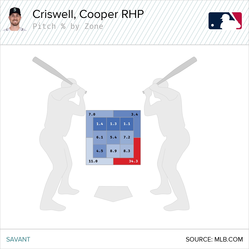 My vision is straightforward: Criswell has elite stuff on his sweeper and changeup, but he’s locating them like a contact manager instead of a strikeout pitcher. Adjust the aim on both, throw the sweeper way more often, and cut back on his terrible sinker. Do that, and he could be the next poster child for the Mariners Pitching Factory.