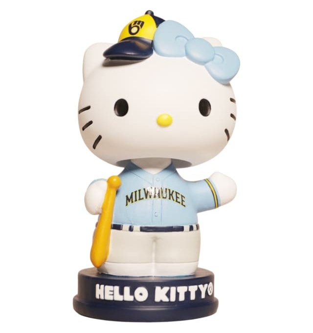 “Hello Kitty is taking over American Family Field this summer,” the team says of its home stadium. “Fans can take home a Hello Kitty bobblehead with the purchase of a special Theme Night ticket and enjoy themed fun throughout the game in this adorable all-ages celebration.” And if it sounds a little startling to say that Hello Kitty is going to be “taking over” territory, remember that one of her personas is, after all, “Red Dragon Archfiend Hello Kitty.”