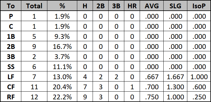 Everything is a small sample size with Neville at this point, but he absolutely killed the ball on Wednesday’s in his debut. He went 8-13 with two doubles, two triples, and a home run. He hit .615/.643/1.308 on Wednesday and hit just .172/.276/.266 every other day of the week (20 games total in these other games).