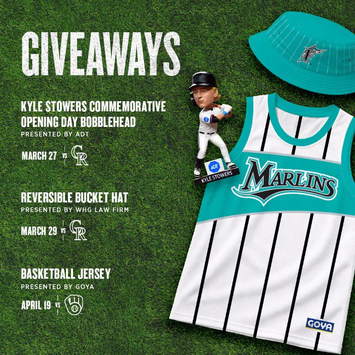 The lineup of fan giveaways begins on Opening Day, March 27, with the Kyle Stowers bobblehead presented by ADT, with additional bobbleheads throughout the season of players Javier Sanoja (Sunday, July 26) and Agustín Ramírez (Sunday, August 23), as well as the 2026 Marlins Legends Hall of Fame Inductees that will be announced during FanFest on Saturday, February 7. Please see the full giveaway lineup below: