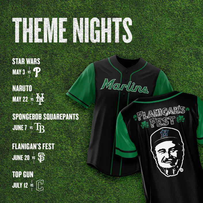 Additionally, the Marlins today announced theme nights for select home games. Notable themes include Star Wars (Sunday, May 3), Naruto (Friday, May 22), SpongeBob SquarePants (Sunday, June 7), Flanigan’s Fest (Saturday, June 20), Top Gun (Sunday, July 12), Pokémon Go (Friday, August 7), and Harry Potter (Sunday, August 23).