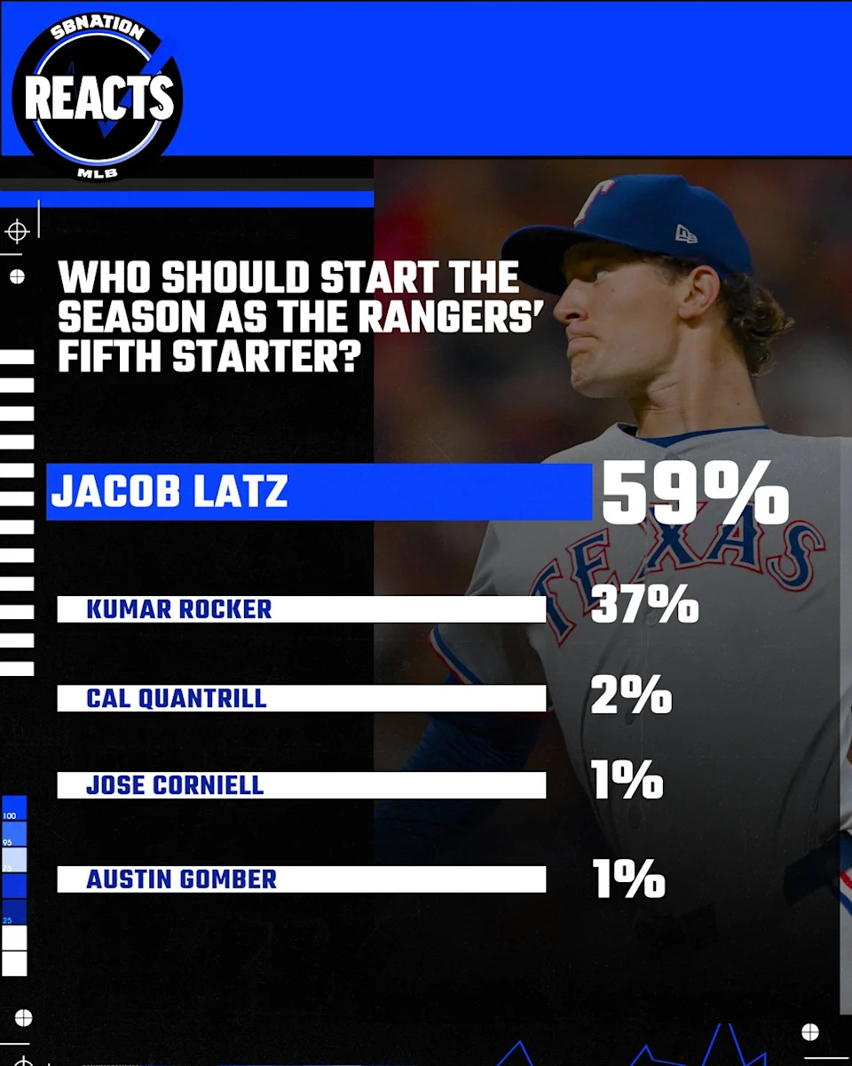 We asked in the Rangers Reacts Survey who should be the Texas Rangers’ fifth starter to start the 2026 season. With the results having come in, there is a pretty clear preference for lefthander Jacob Latz.