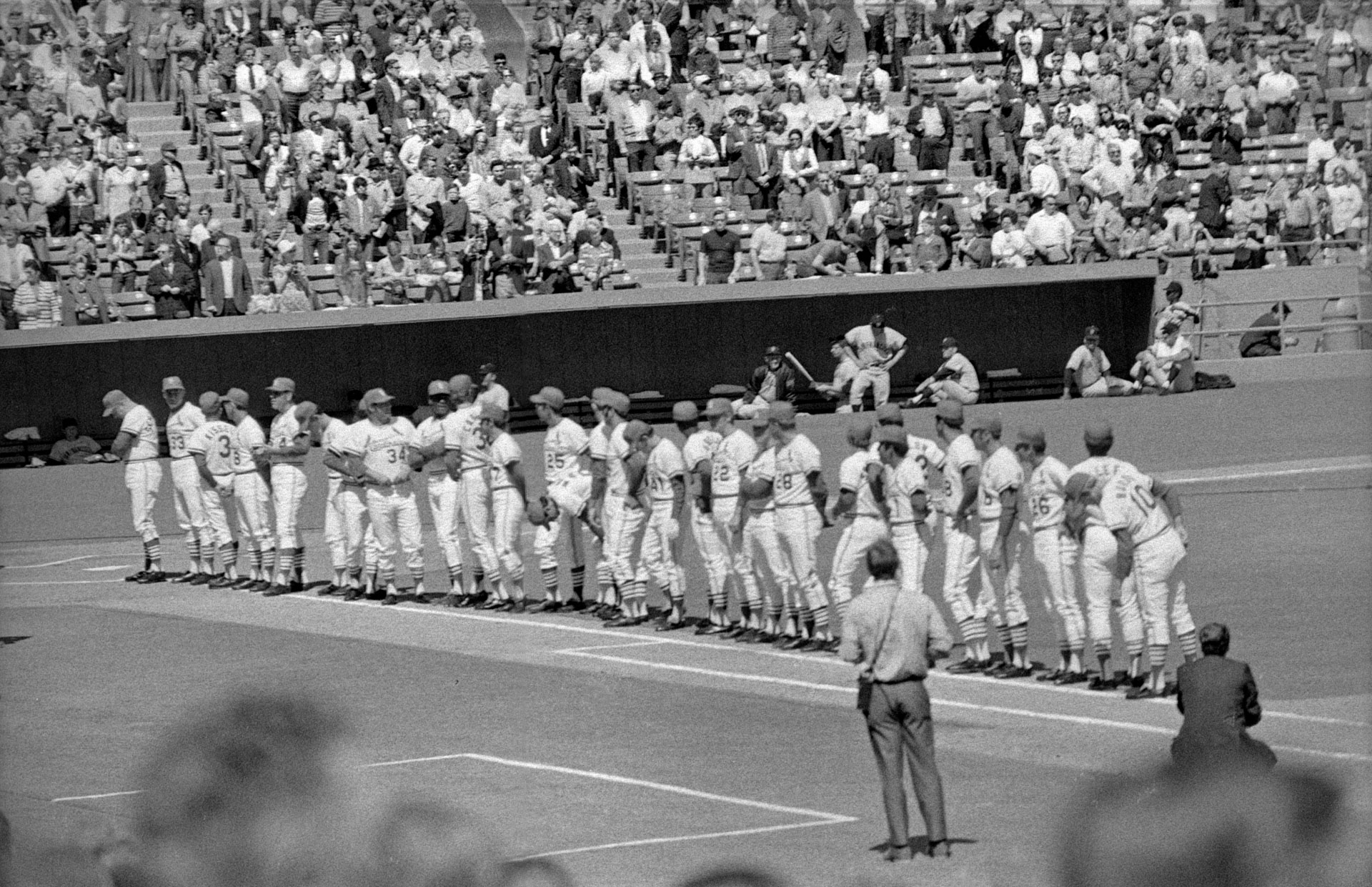 Those were the days of Harry Caray and Jack Buck, who were broadcast partners doing the Cardinals for 14 seasons, spanning from 1954 through 1969. Fans would bring their transistor radios to the games, and the KMOX broadcast could be heard throughout the stadium.