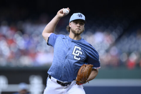Washington Nationals starting pitcher Jake Irvin (27) in action during a baseball game against the San Francisco Giants, Saturday, May 24, 2025, in Washington. (AP Photo/Nick Wass)(AP/Nick Wass)