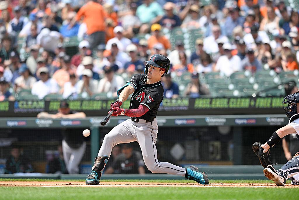 Corbin Carroll bats during the first inning against the Detroit Tigers