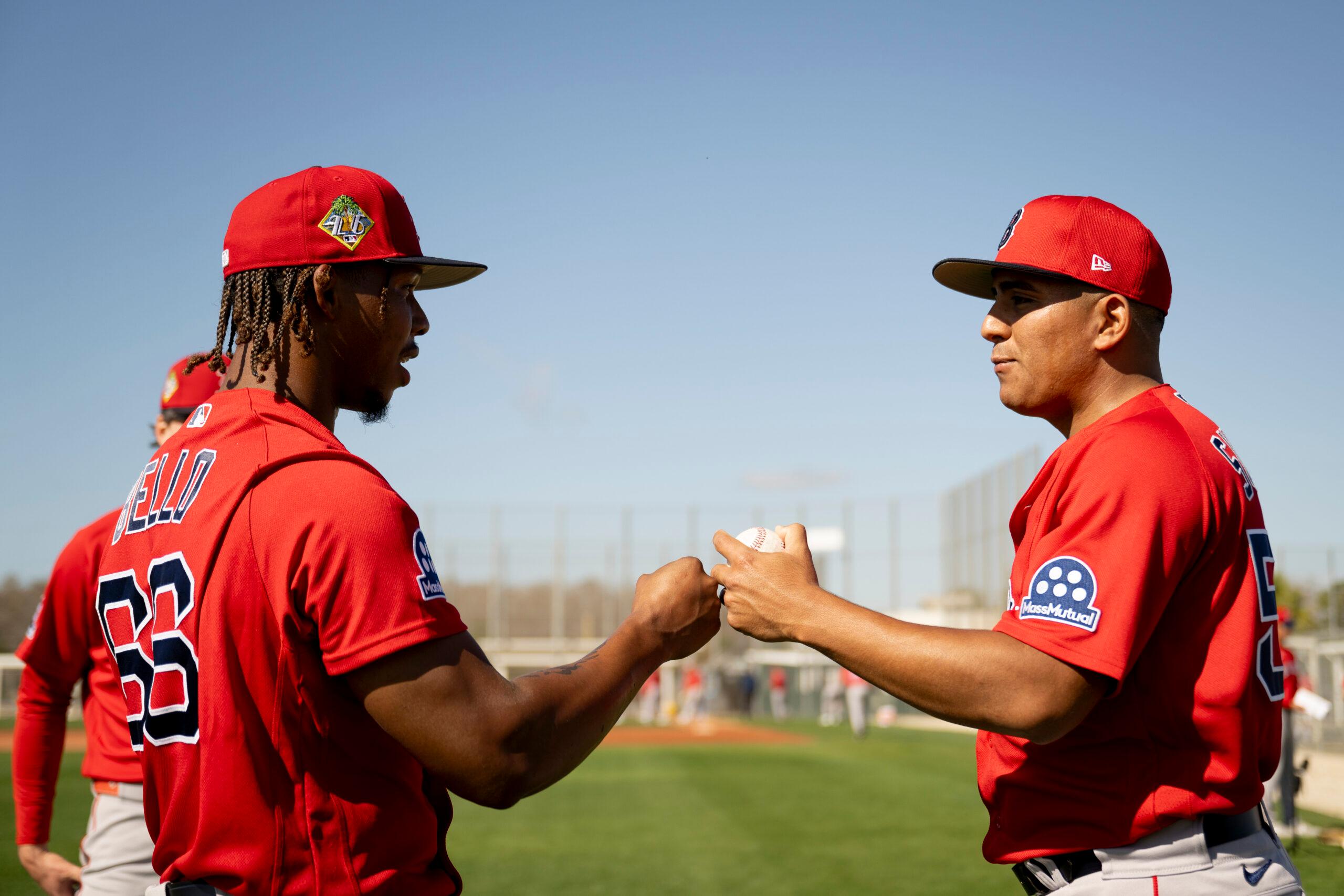 Brayan Bello and Ranger Suárez during a workout at JetBlue Park at Fenway South on February 11