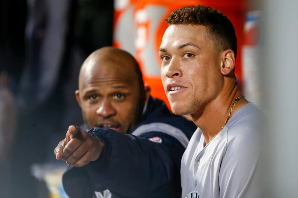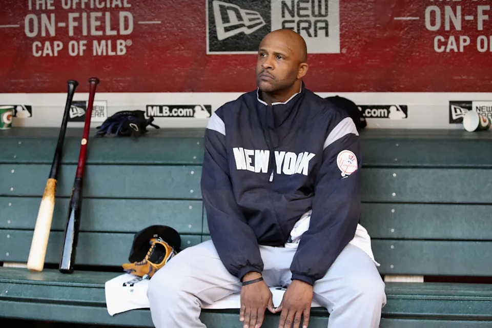 Starting pitcher CC Sabathia of the New York Yankees sits in the dugout during the first inning of the MLB game against the Arizona Diamondbacks at Chase Field on April 30, 2019 in Phoenix, Arizona.