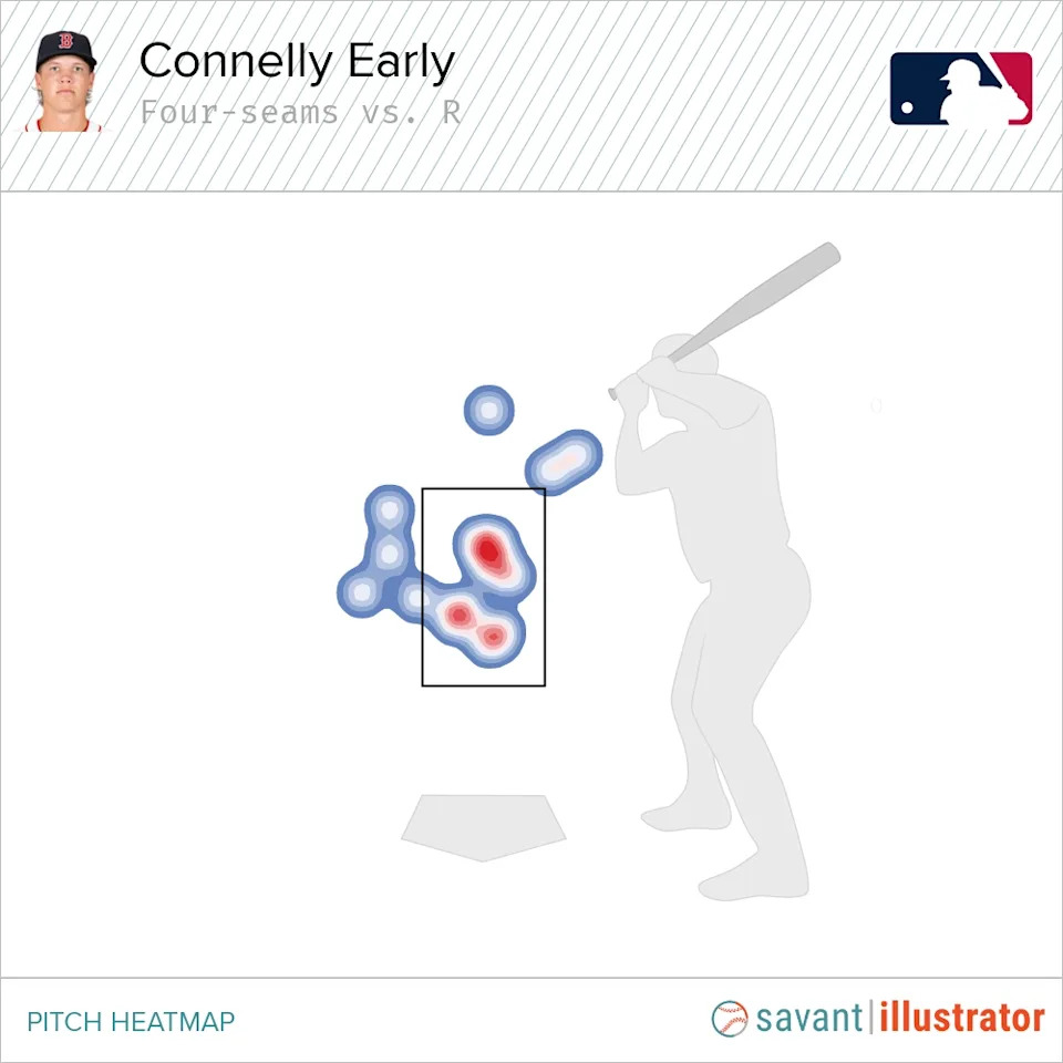 Early faced 22 lefties over his four regular-season starts, surrendering hits to three, walking one, and striking out 13. He also hit one batter. He used a pretty standard approach, throwing sinkers inside and breaking balls away. His sweeper was particularly devastating to lefties, generating ten whiffs on 20 pitches. If there’s a knock on Early against lefties, it’s that he left his four-seam fastball over the plate too frequently. At 94 mph with seven feet of extension and a flat approach angle, he has some room for error, but good hitters will punish these mistakes should they persist.