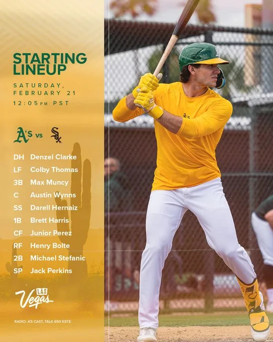 The undefeated (OK, 1-0, if you insist) Chicago White Sox get home turf at Camelback this afternoon to face the also undefeated (but just 0-0) Sacramento/Las Vegas/You Name It A’s, as they follow the usual early Cactus League procedure of having no starters back from yesterday’s game.