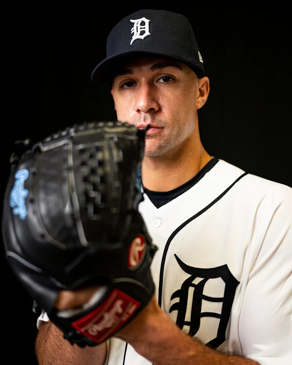 Detroit Tigers pitcher Jack Flaherty on picture day during spring training at TigerTown in Lakeland, Fla. on Tuesday, Feb. 17, 2026.
