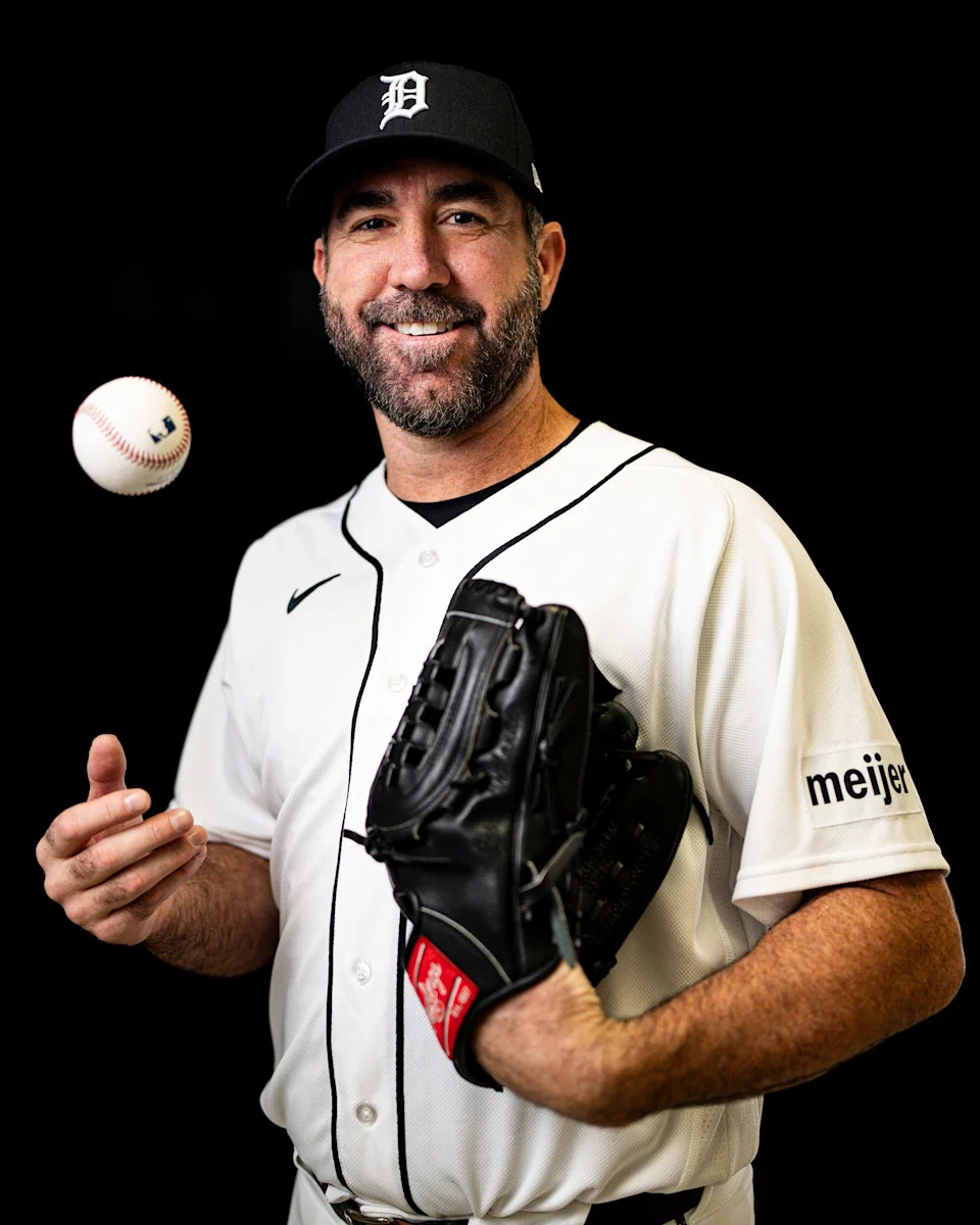 Detroit Tigers pitcher Justin Verlander on picture day during spring training at TigerTown in Lakeland, Fla. on Tuesday, Feb. 17, 2026.