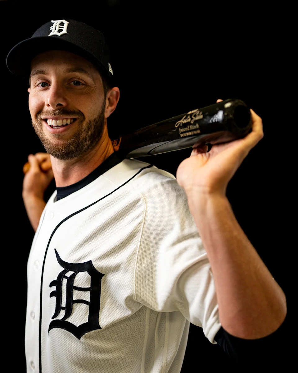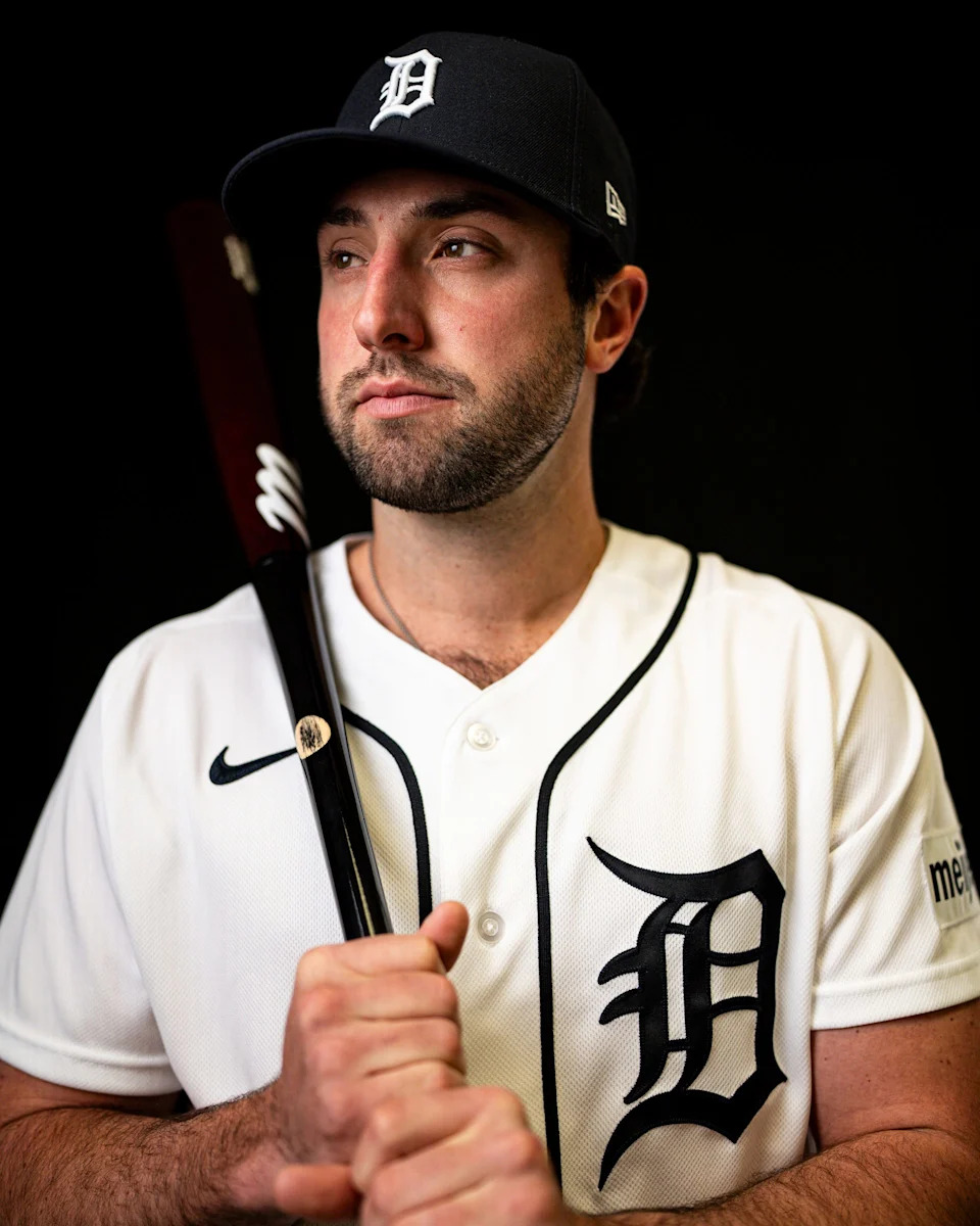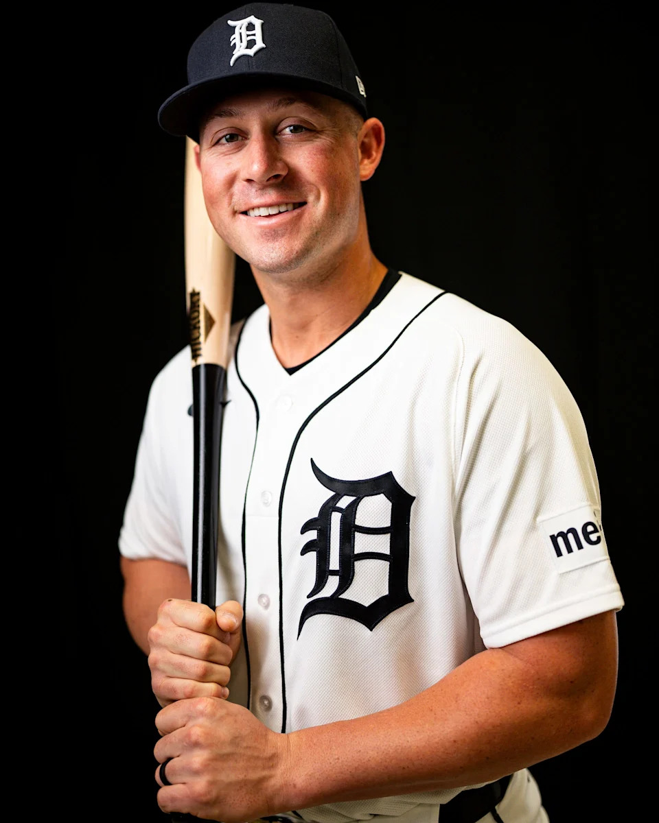 Detroit Tigers outfielder Matt Vierling on picture day during spring training at TigerTown in Lakeland, Fla. on Tuesday, Feb. 17, 2026.