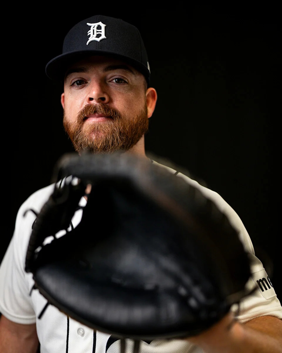Detroit Tigers pitcher Tanner Rainey on picture day during spring training at TigerTown in Lakeland, Fla. on Tuesday, Feb. 17, 2026.