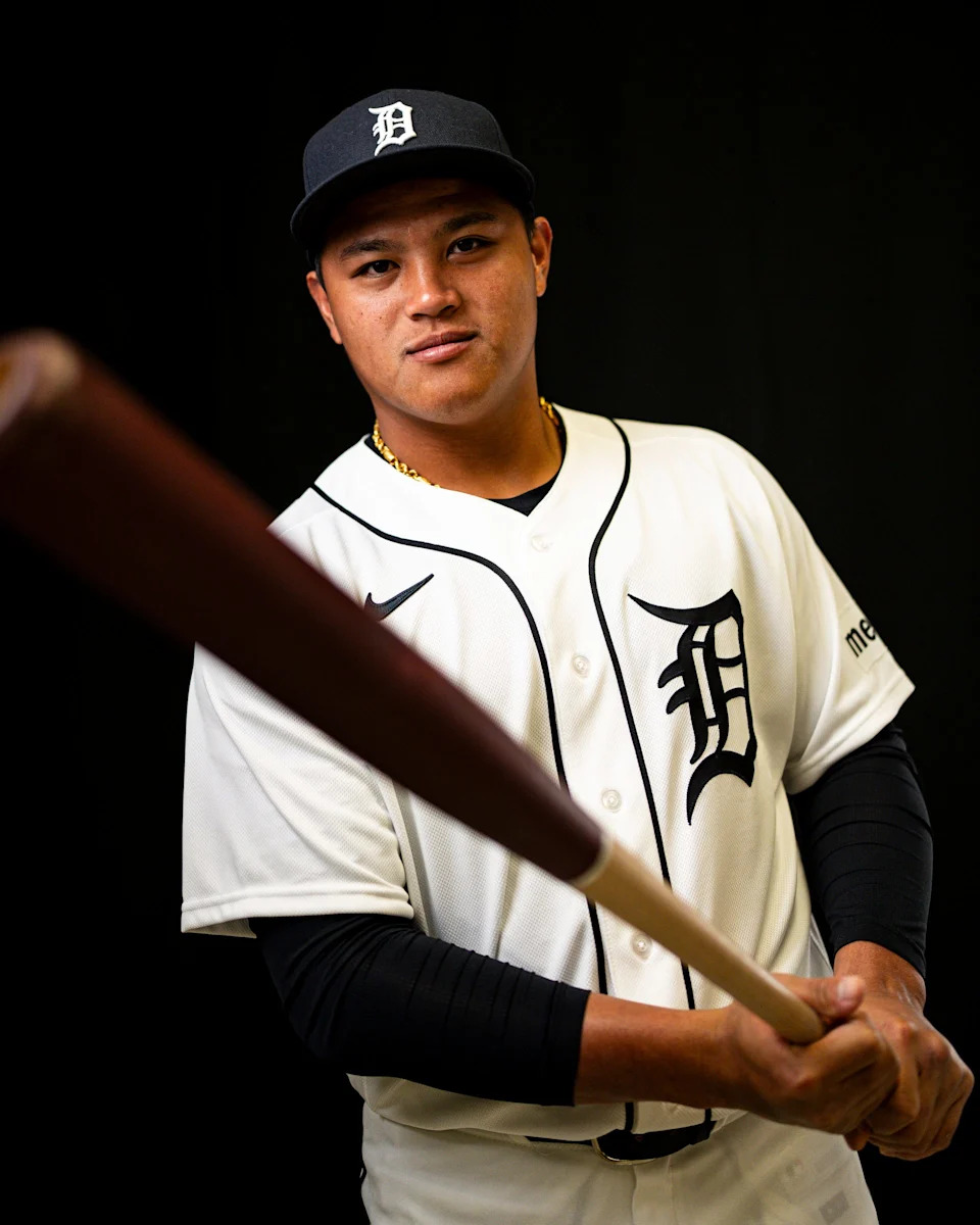 Detroit Tigers outfielder Trei Cruz on picture day during spring training at TigerTown in Lakeland, Fla. on Tuesday, Feb. 17, 2026.