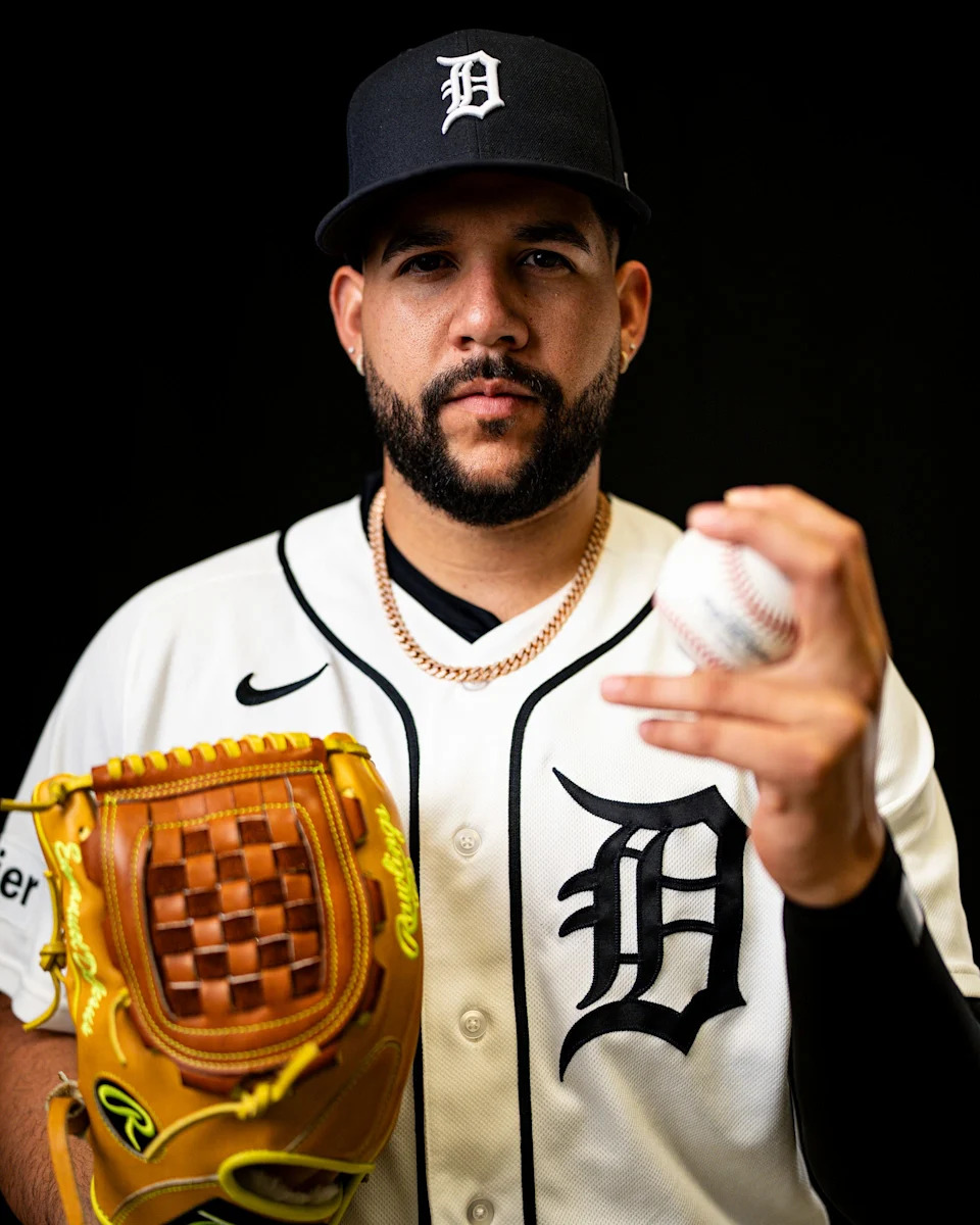 Detroit Tigers pitcher Framber Valdez on picture day during spring training at TigerTown in Lakeland, Fla. on Tuesday, Feb. 17, 2026.