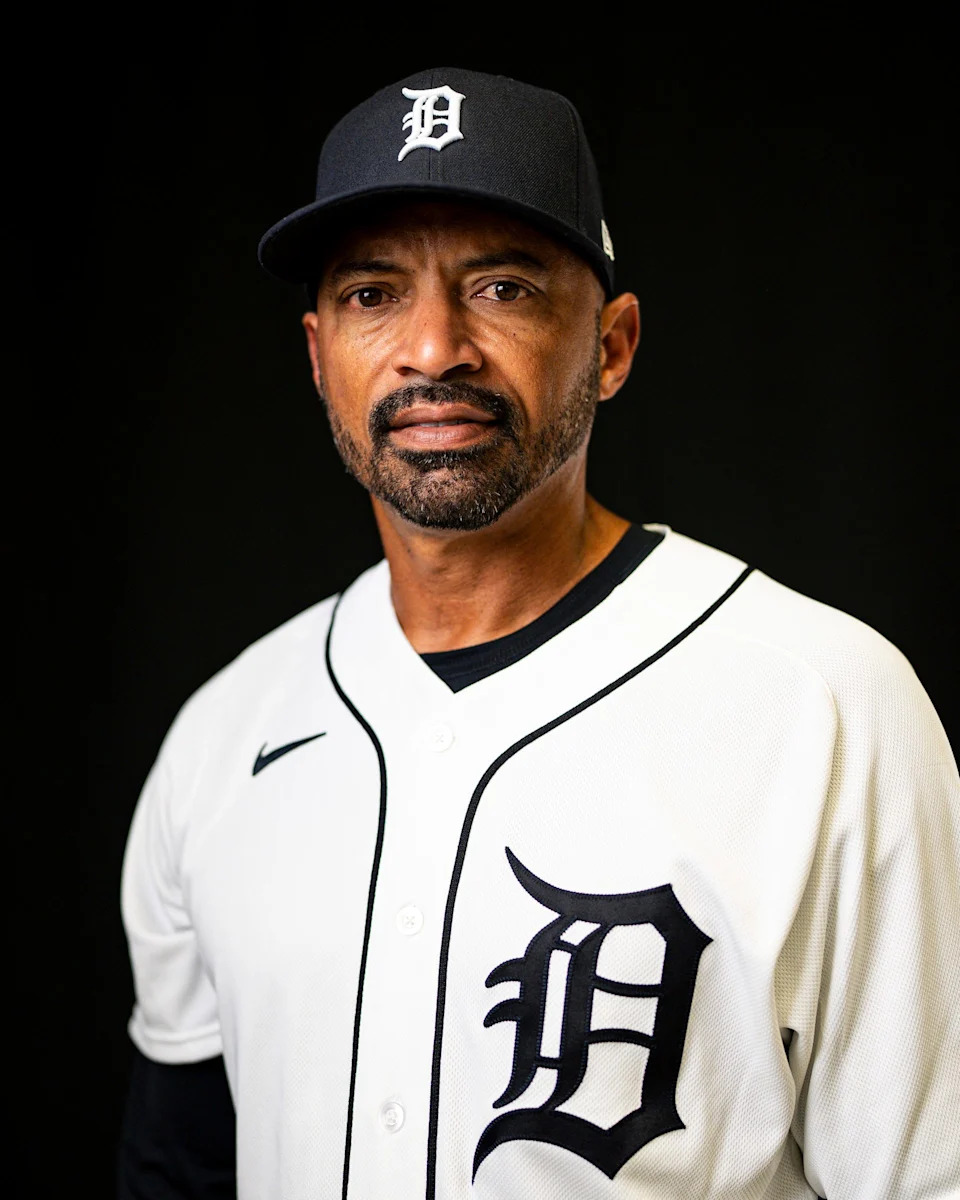 Detroit Tigers first base coach Anthony Sanders on picture day during spring training at TigerTown in Lakeland, Fla. on Tuesday, Feb. 17, 2026.