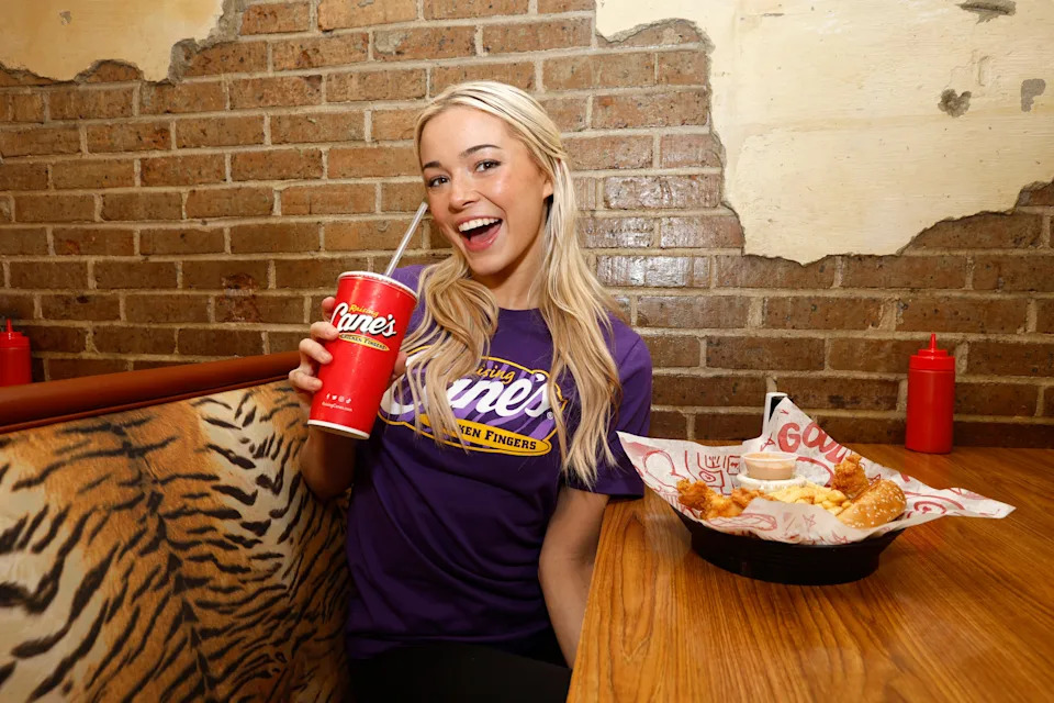 Livvy Dunne at Raising Cane’s on April 23, 2024 in Baton Rouge, Louisiana.